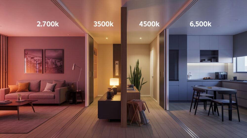 A temperatura de cor da luz influencia diretamente na atmosfera do ambiente. Escolher a cor errada pode tornar o espaço desconfortável ou alterar a percepção das cores na decoração.
